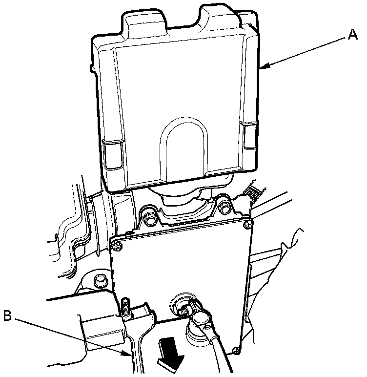 13. Remove the battery holder (B), and reposition the battery away from the ECM/PCM.