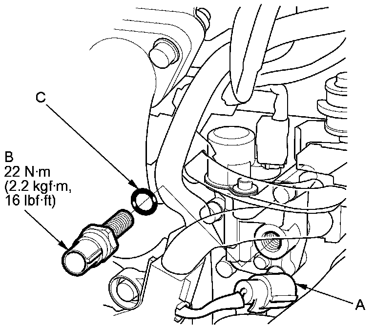 3. Install the parts in the reverse order of removal with a new O-ring (C).