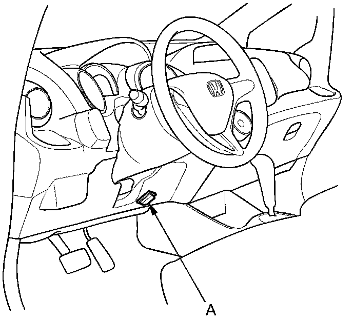 2. Connect the HDS to the data link connector (DLC) (A) located under the driver's side of the dashboard.