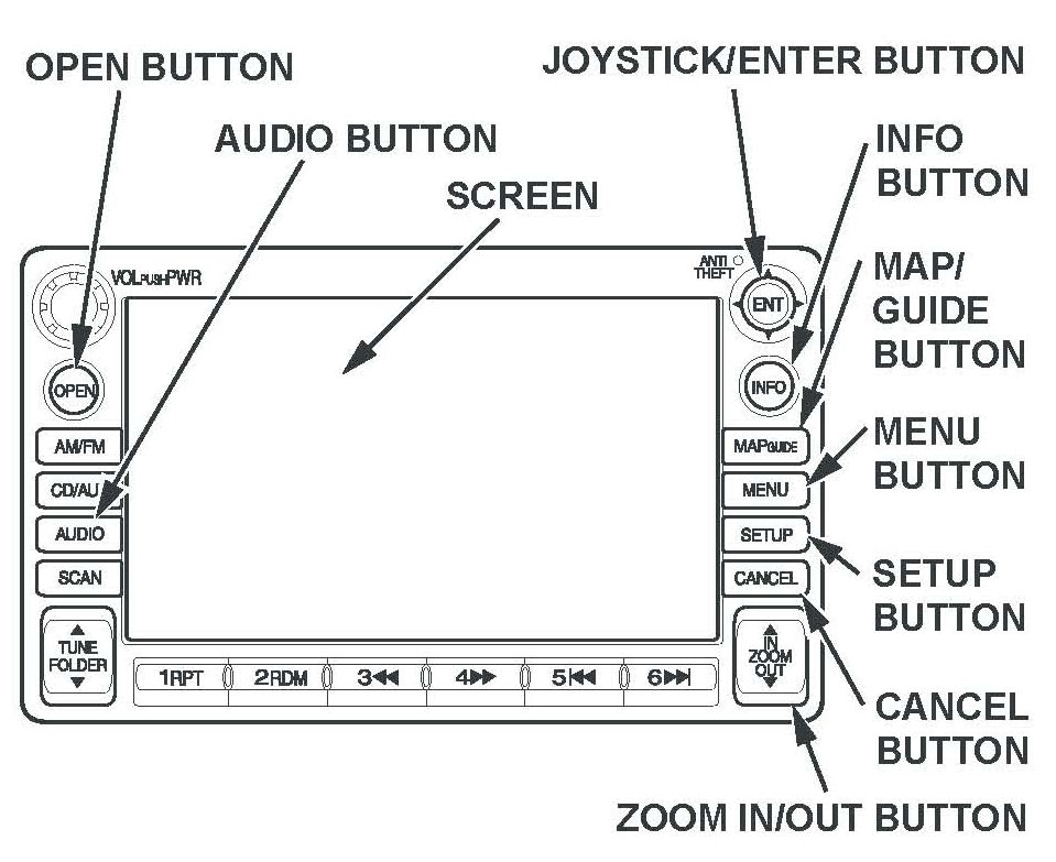 The buttons listed above are used in this bulletin. For more information on the button functions, see Getting Started in the navigation manual.