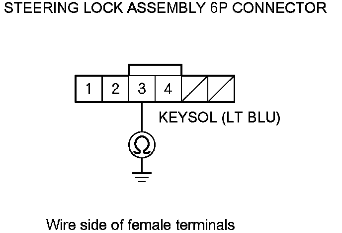 6. Check for continuity between steering lock assembly 6P connector terminal No. 3 and body ground.