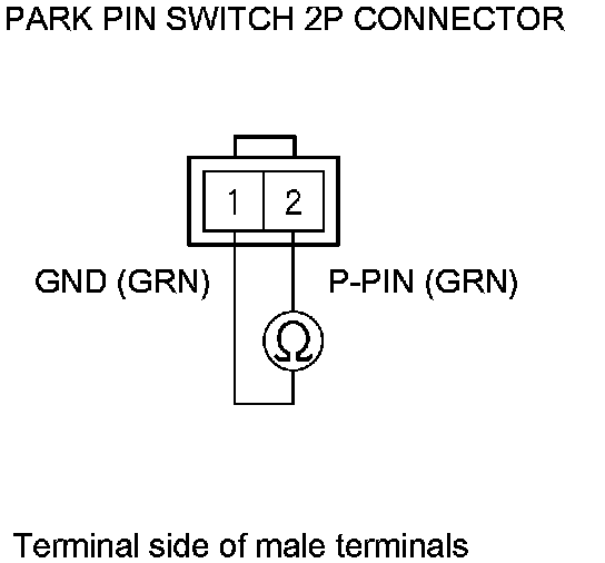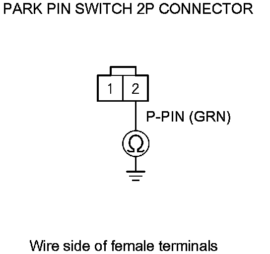 9. Check for continuity between park pin switch 2P connector terminal No. 2 and body ground.