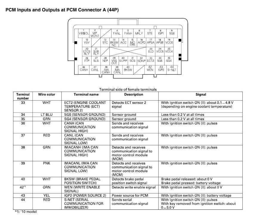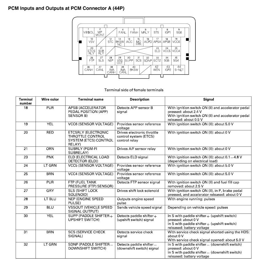 PCM Inputs And Outputs At Connector A