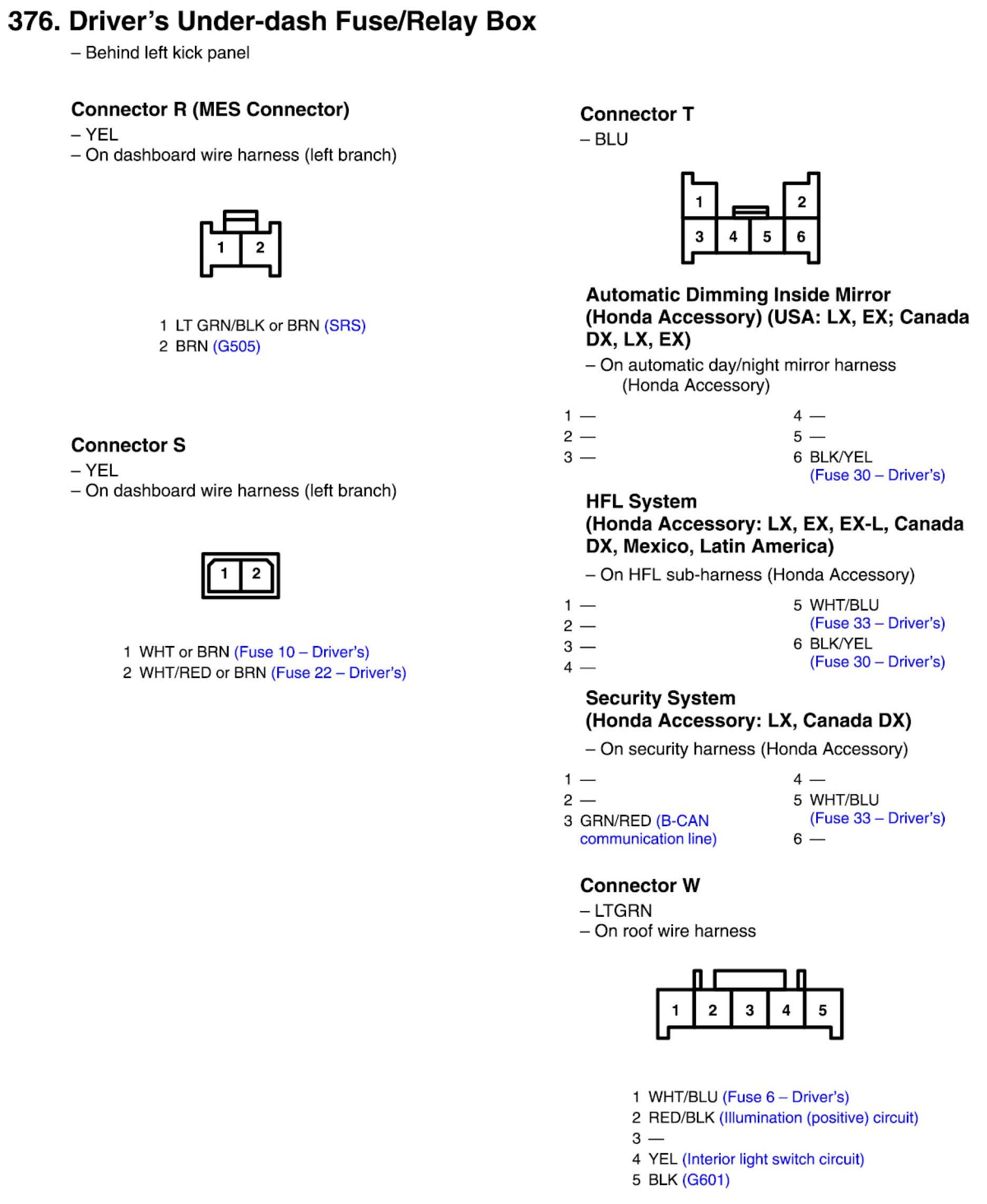 Driver's Under-dash Fuse/Relay Box Connector View