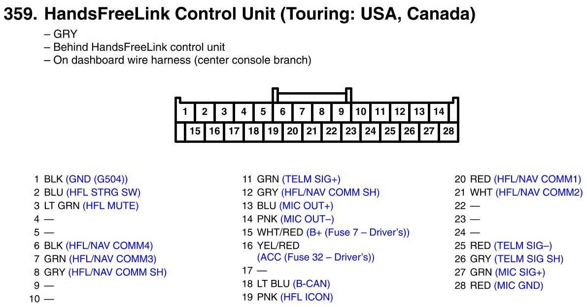 HandsFreeLink Control Unit Connector View (Touring: USA, Canada)