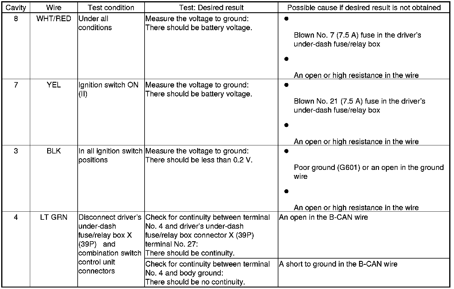 Home >> Honda >> 2010 >> Odyssey V6-3.5L >> Repair and Diagnosis >> Lighting and Horns >> Testing and Inspection >> Combination Switch Control Unit Input Test