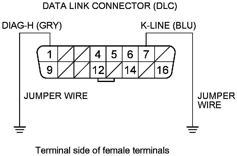 19. Connect DLC terminals No. 1 and No. 7 to body ground with a jumper wire.