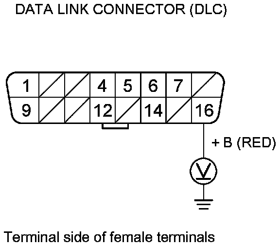 24. Measure the voltage between DLC terminal No. 16 and body ground.