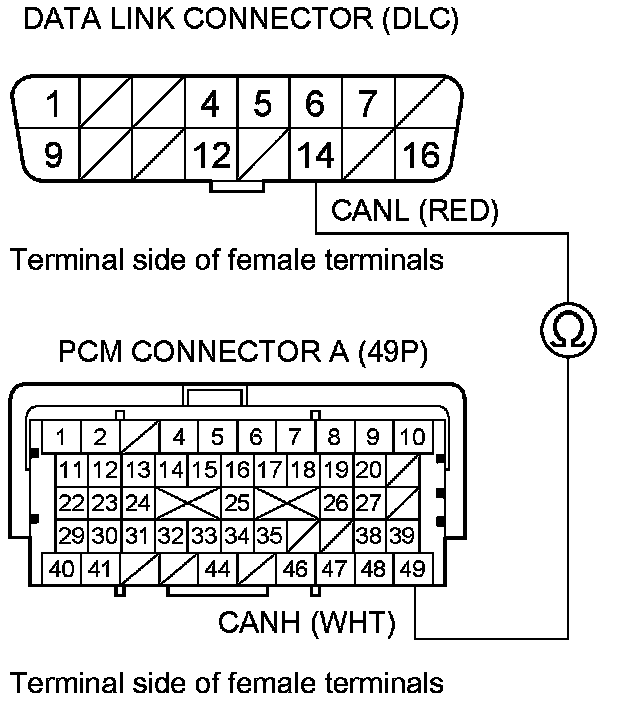 Repair open in the wire between the PCM(A49) and DLC terminal No. 14.�