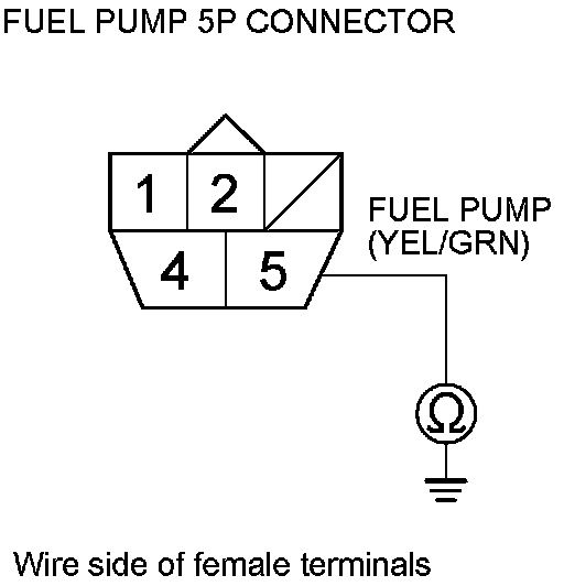 45. Check for continuity between PGM-FI main relay 2 (FUEL PUMP) 4P connector terminal No. 1 and body ground.