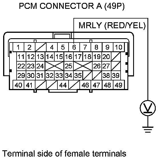 44. Test PGM-FI main relay 2 (FUEL PUMP) Power Relay Test.