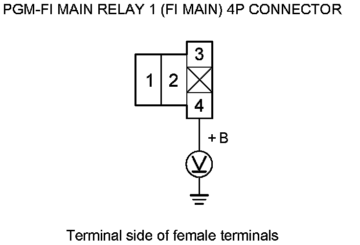 69. Measure the voltage between PGM-FI main relay 1 (FI MAIN) 4P connector terminal No. 1 and body ground.