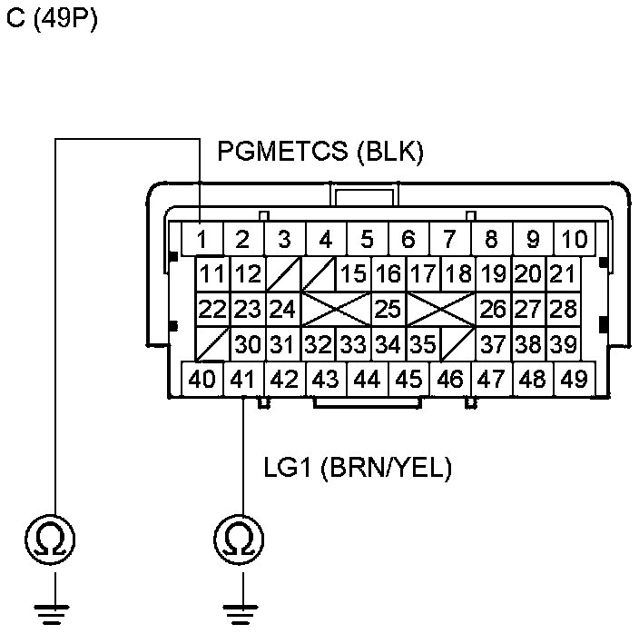 Repair open in the wire(s) between the PCM (A41, B1, B40, B41, C1, C41) and body ground (G101).