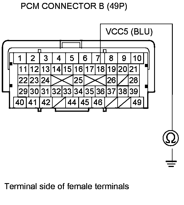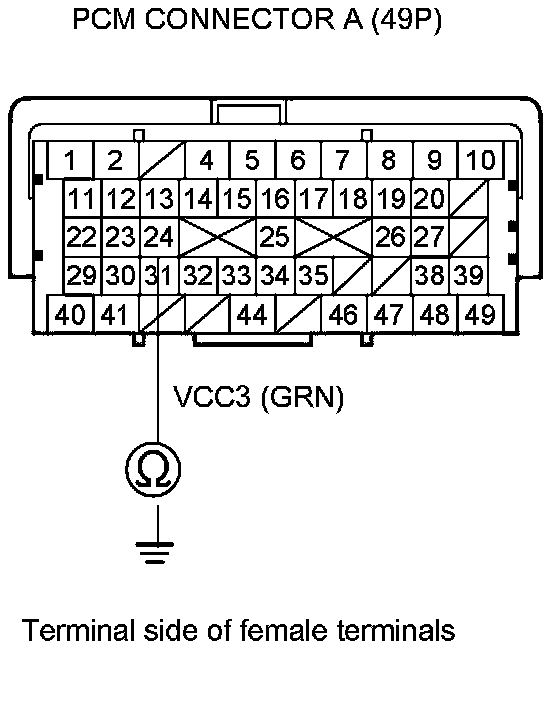 31. Check for continuity between PCM connector terminal A49 and DLC terminal No. 14.