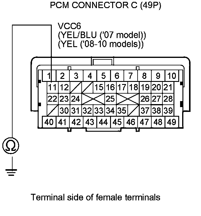 87. Continue to check for continuity between PCM connector terminal C11 and body ground, while disconnecting the IMT actuator 5P connector ('07 model) or the rocker arm oil pressure sensor 3P connector ('08-10 models).
