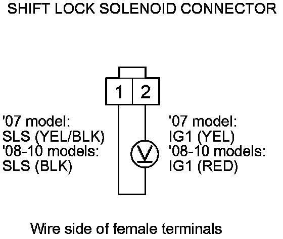 6. Disconnect the shift lock solenoid connector Shift Lock Solenoid Replacement.