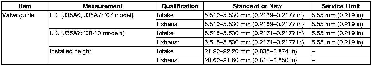 Home >> Honda >> 2010 >> Odyssey V6-3.5L >> Repair and Diagnosis >> Specifications >> Mechanical Specifications >> Engine >> System Specifications >> Valve Guide Specifications