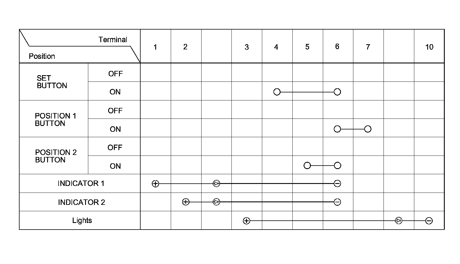 4. Check for continuity between the terminals in each switch position according to the table.