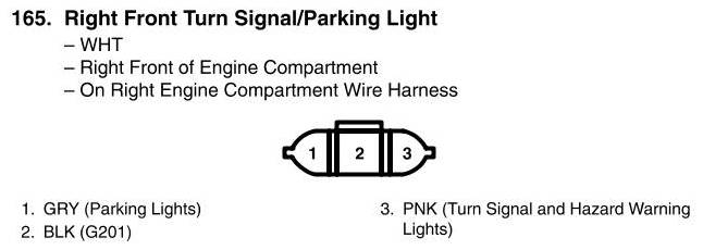 View 165 - Right Front Turn Signal/Parking Light Connector View