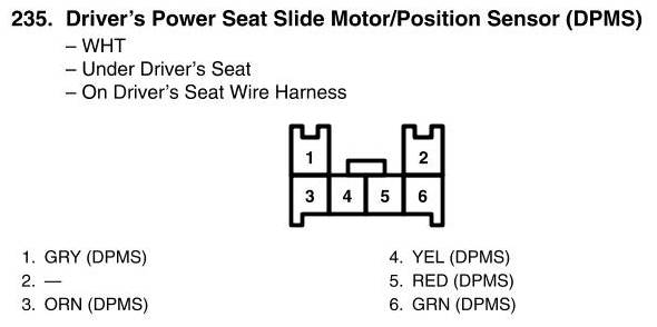 View 235 - Driver's Power Seat Slide Motor/Position Sensor Connector View (DPMS)