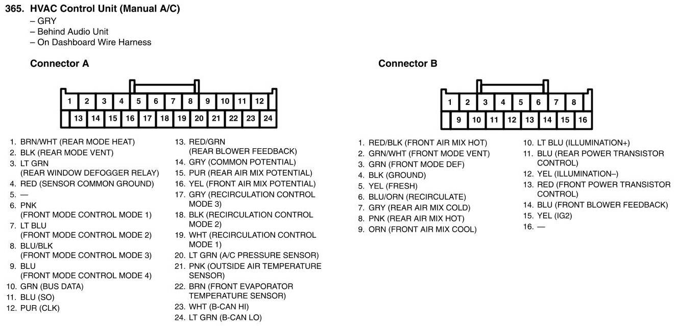 HVAC Control Unit Connector View (Manual A/C)