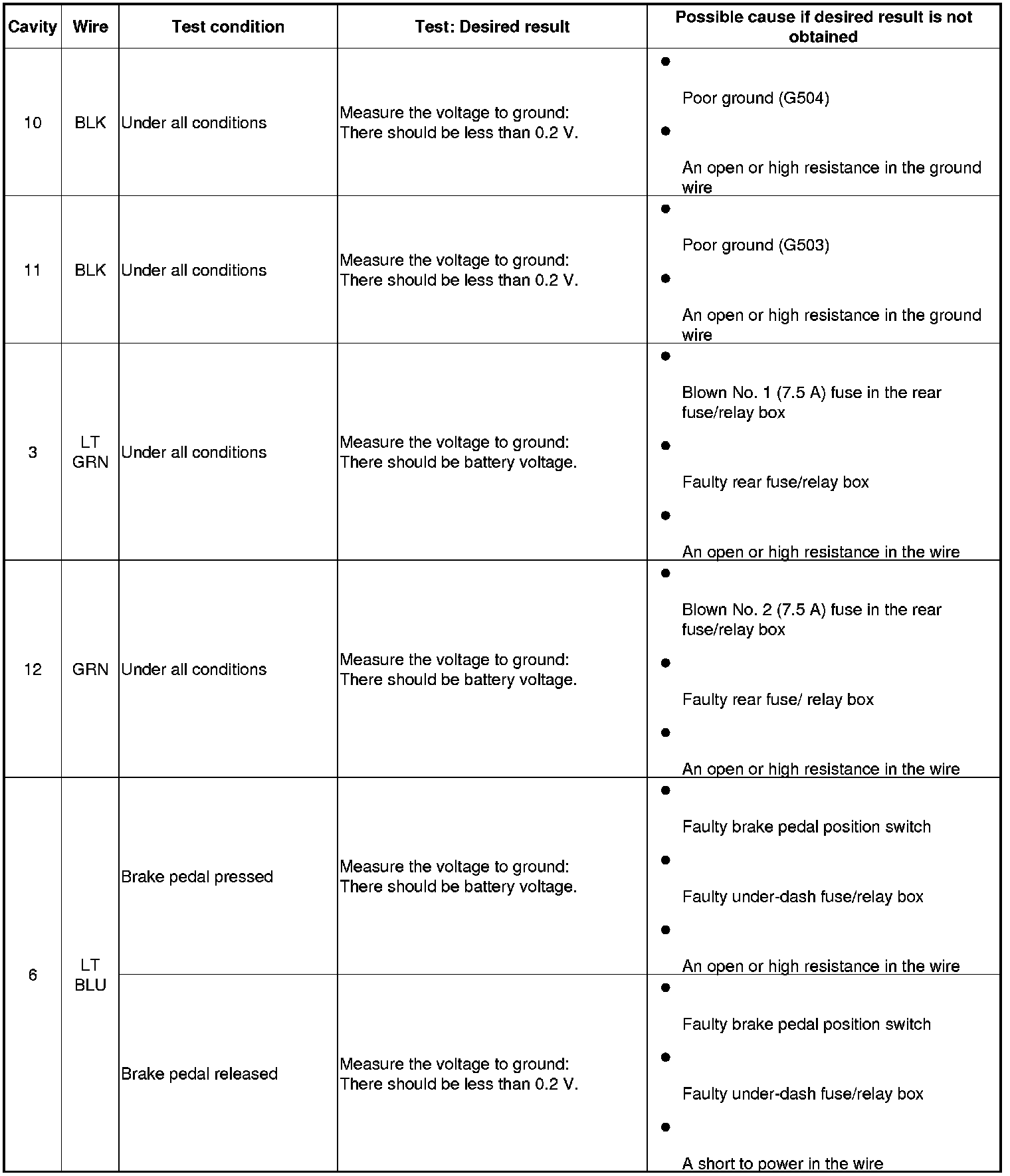 5. With the connectors still disconnected, do the following input tests.
