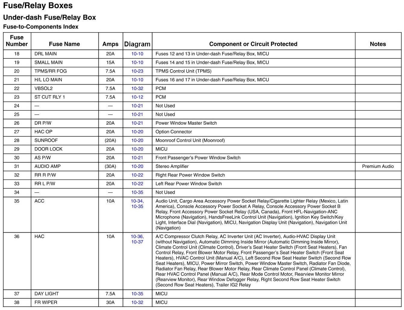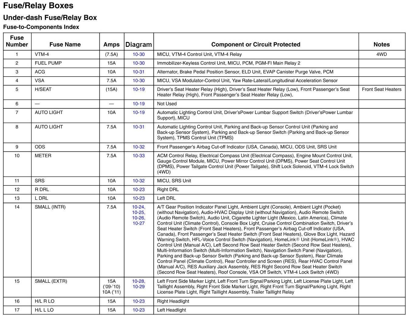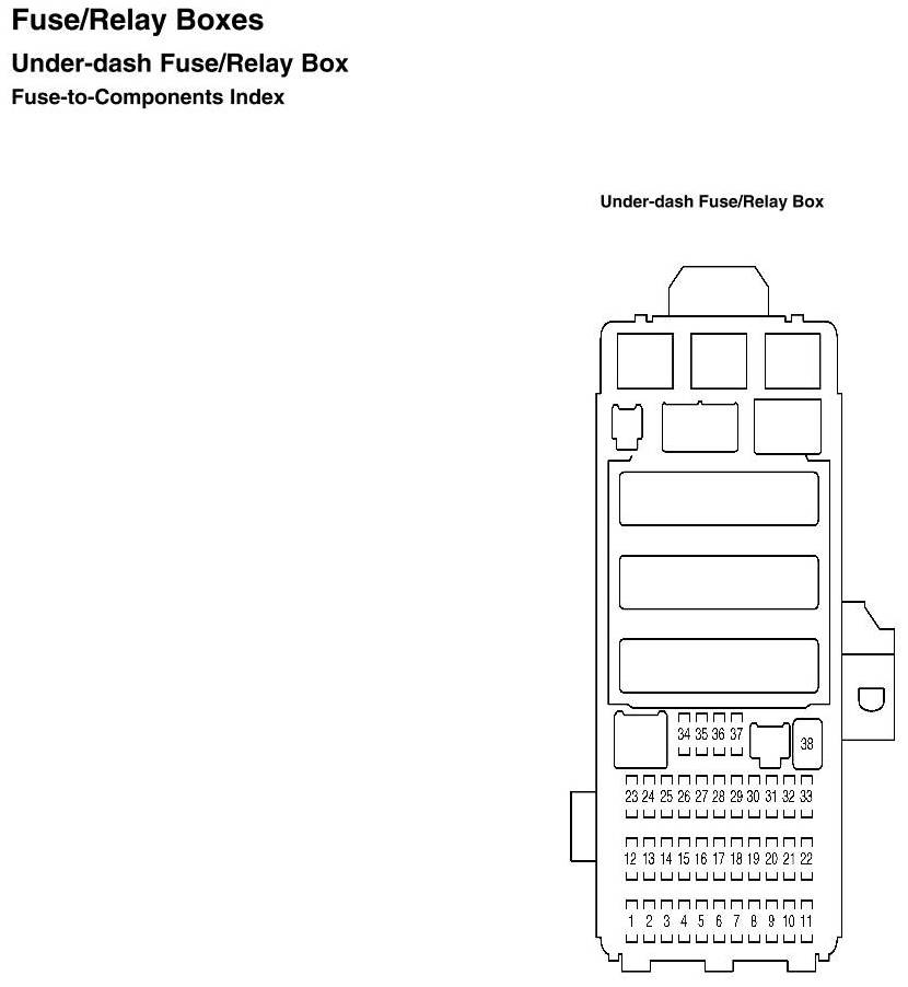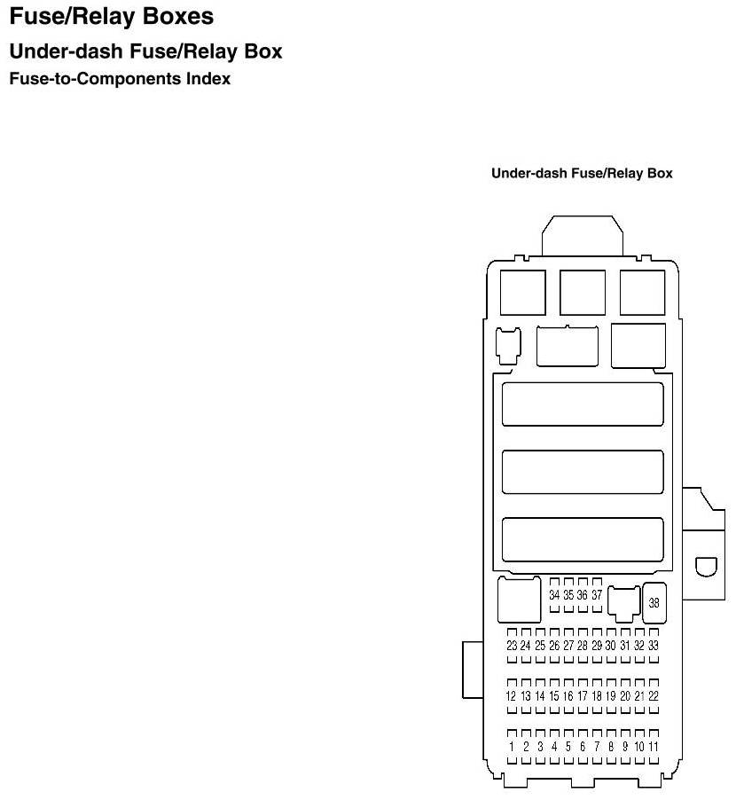 Under-Dash Fuse/Relay Box - Fuse-To-Components Index
