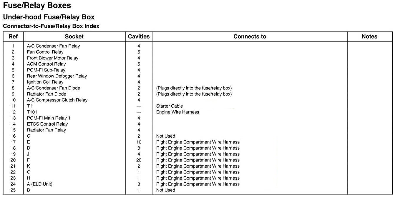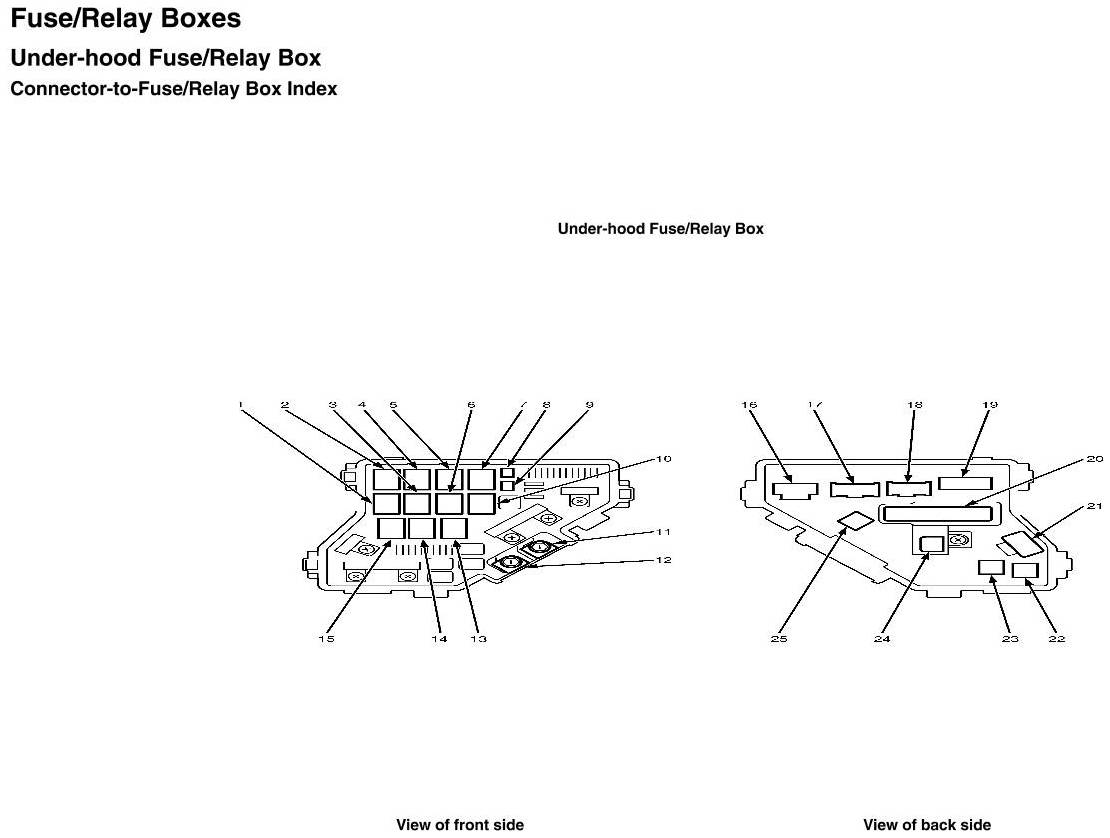 Under-Hood Fuse/Relay Box - Connector-To-Fuse/Relay Box Index