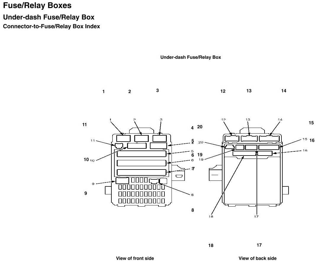 Under-dash Fuse/Relay Box - Connector-to-Fuse/Relay Box Index