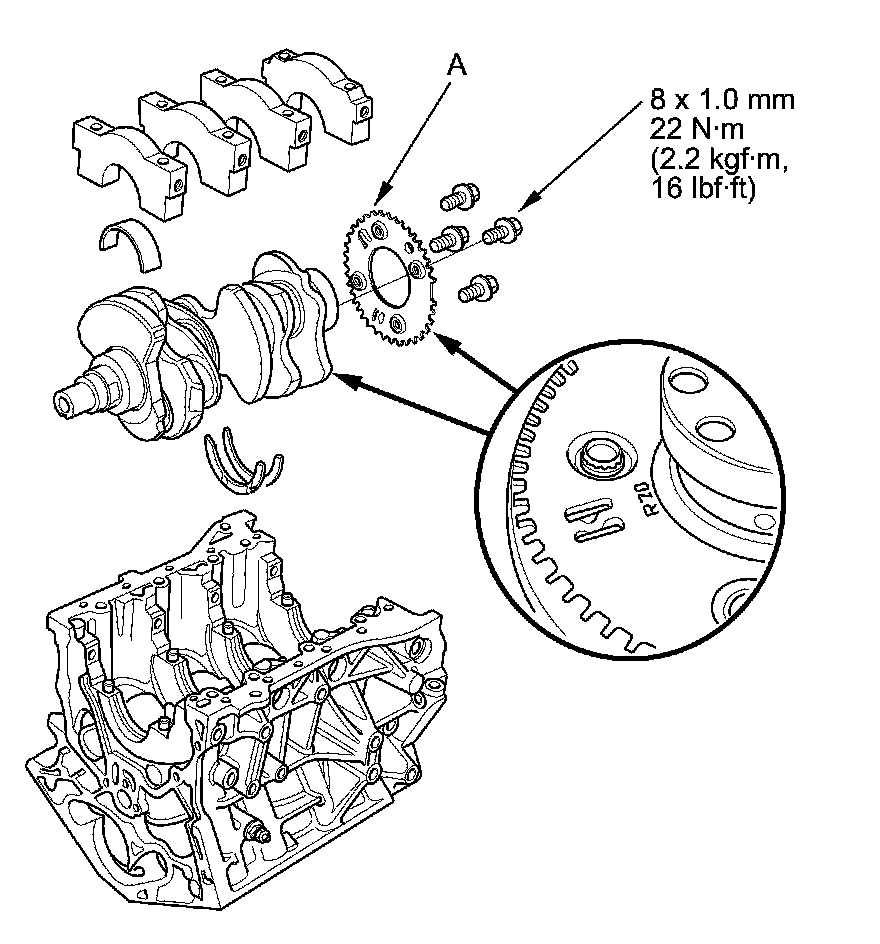 2. Remove the crankshaft position (CKP) pulse plate (A) from the crankshaft.