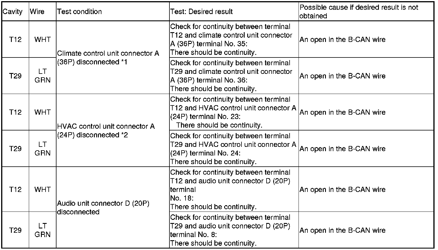 NOTE: Before testing, troubleshoot the multiplex integrated control unit first, using B-CAN System Diagnosis Test Mode A Troubleshooting - B-CAN System Diagnosis Test Mode A, and make sure the lighting system works properly.