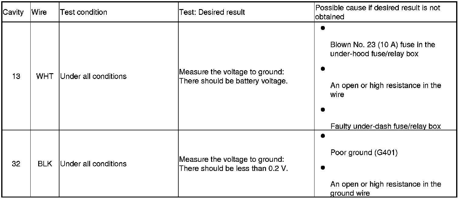 6. Reconnect the connectors to the under-dash fuse/relay box, and do the following input tests.