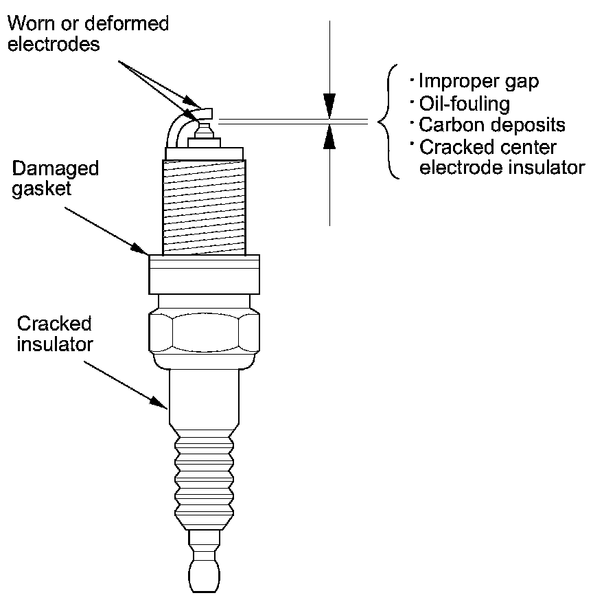 2. Remove the spark plugs, then inspect the electrodes and the ceramic insulator.