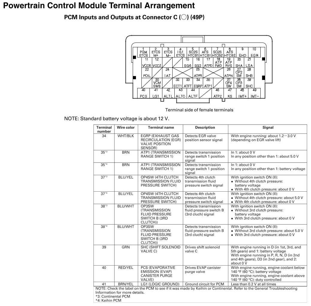 PCM Inputs And Outputs At Connector C
