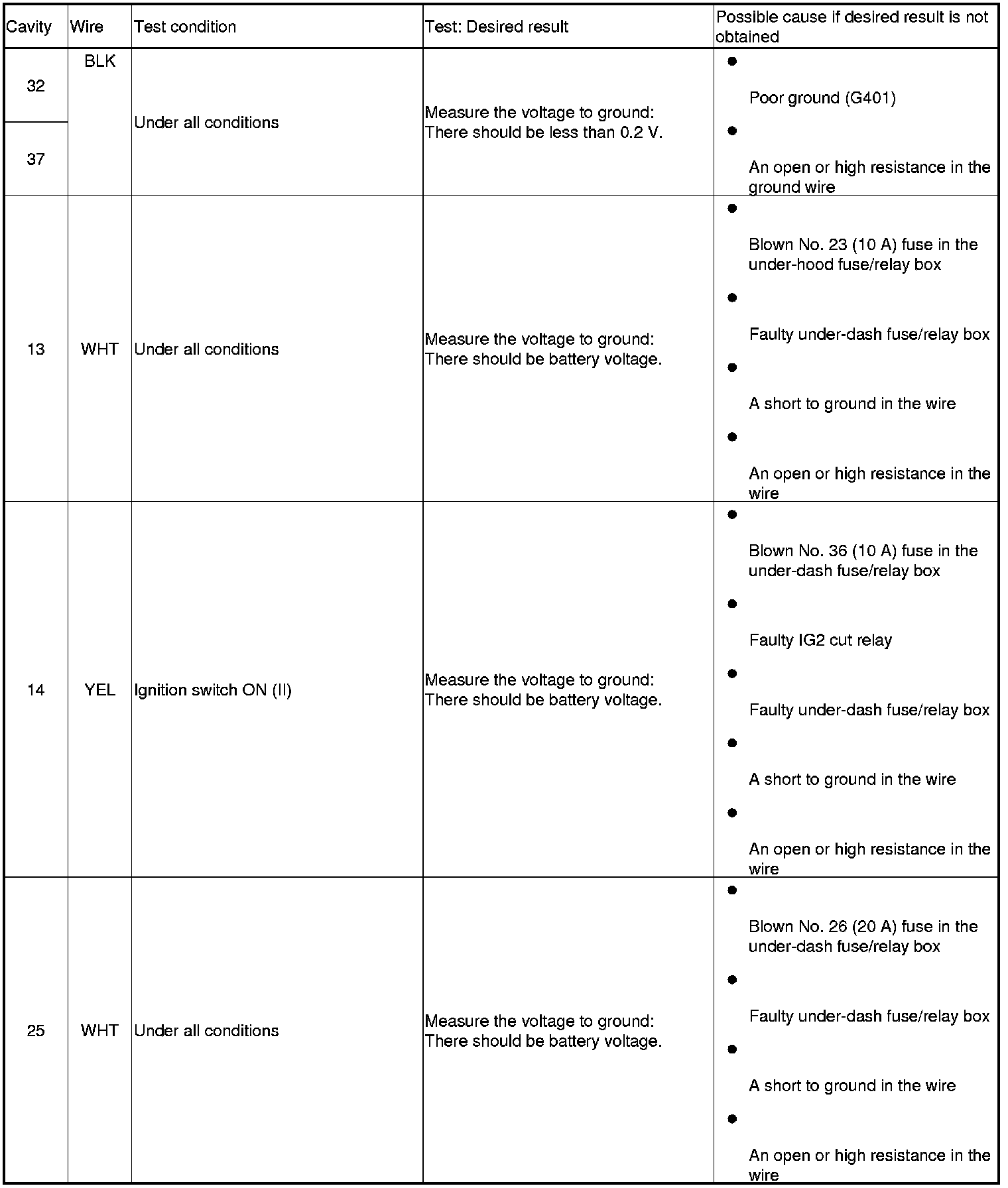NOTE: Before testing, troubleshoot the multiplex integrated control unit first, using B-CAN System Diagnosis Test Mode A Troubleshooting - B-CAN System Diagnosis Test Mode A.