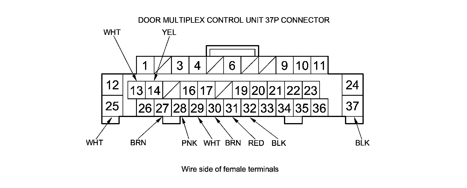 10. Reconnect the 37P connector to the door multiplex control unit, and do the following input tests.