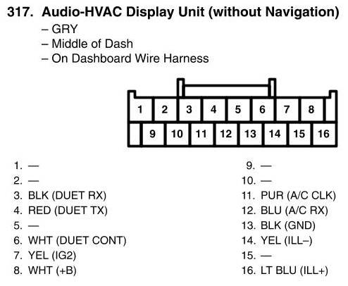 Audio-HVAC Display Unit Connector View (Without Navigation)