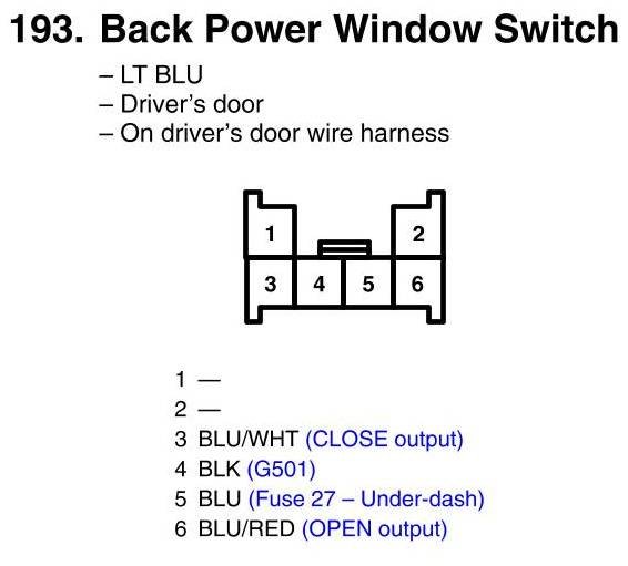 View 193 - Back Power Window Switch Connector View