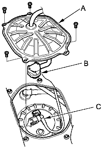 5. Disconnect the quick-connect fitting (C) from the fuel tank unit.
