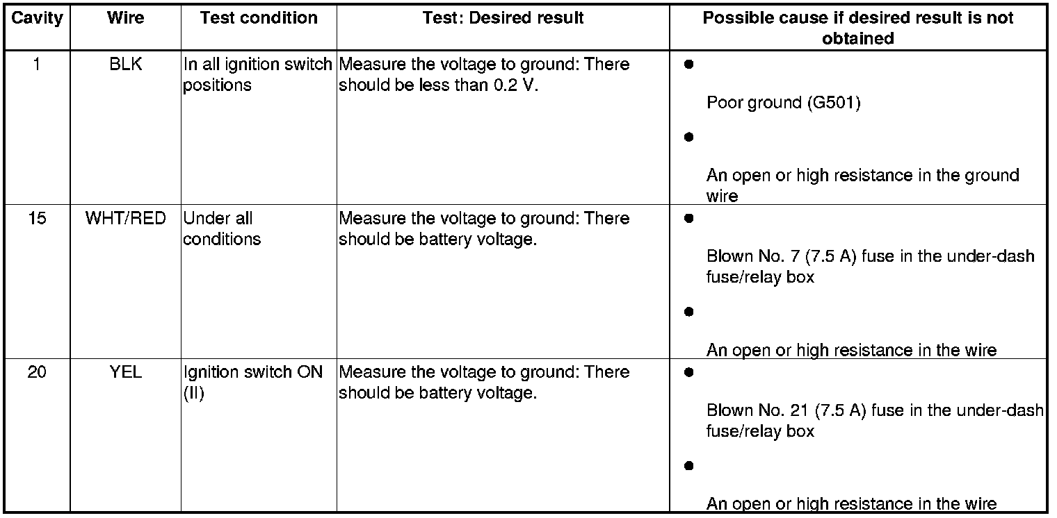 NOTE: Check the No. 22 (120 A), No. 23 (60 A), No. 15 (40 A) fuse in the under-hood fuse/relay box before troubleshooting.