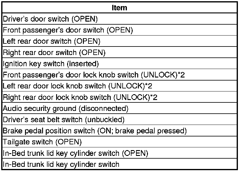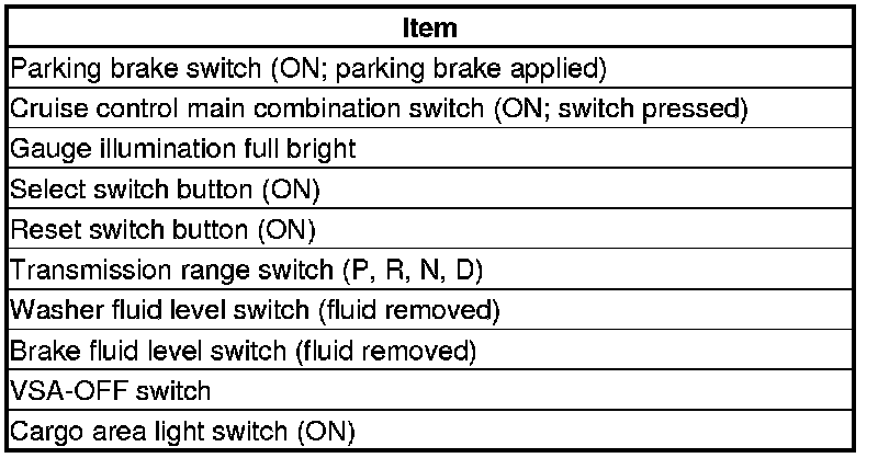 12. The following tables list the circuits that can be checked in Test Mode 2. Operate the switch that is most closely related to the problem. If the circuit is OK, the map lights will blink once. If the circuit is faulty, there will be no indication.