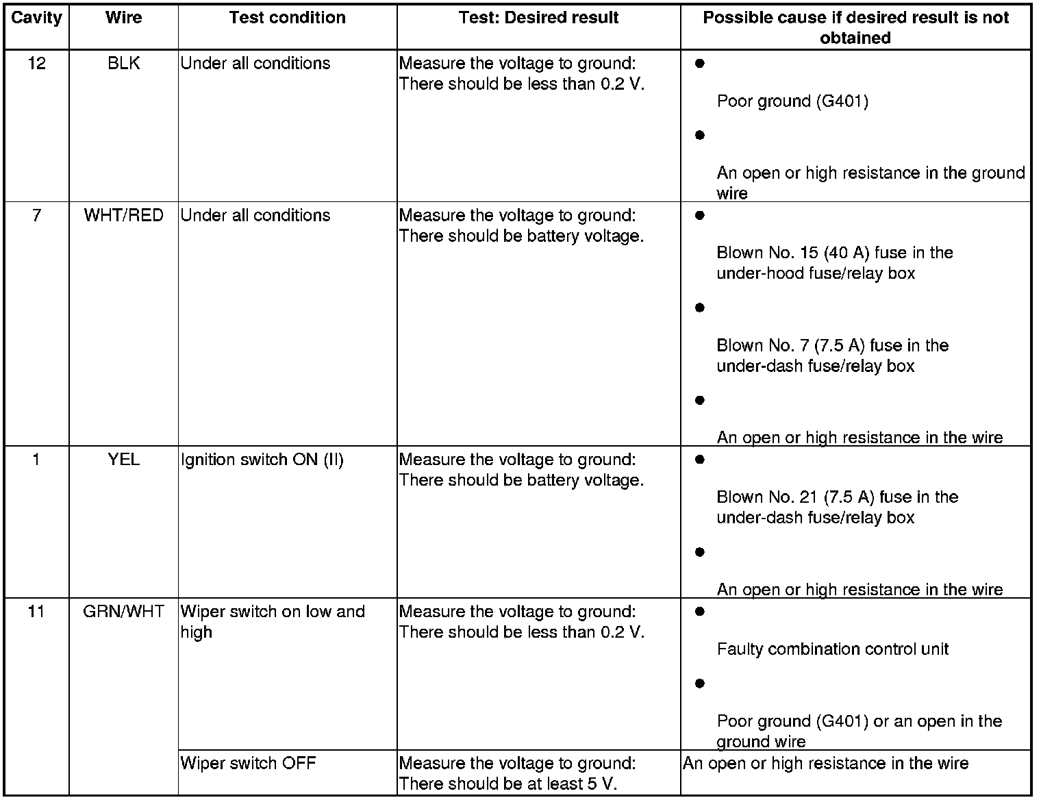 Home >> Honda >> 2010 >> Ridgeline V6-3.5L >> Repair and Diagnosis >> Wiper and Washer Systems >> Testing and Inspection >> Wipers/Washers (Combination Switch Control Unit) Input Test