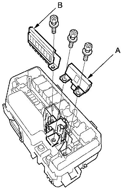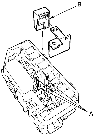 3. Remove the under-hood fuse/relay box (C) from the bracket.
