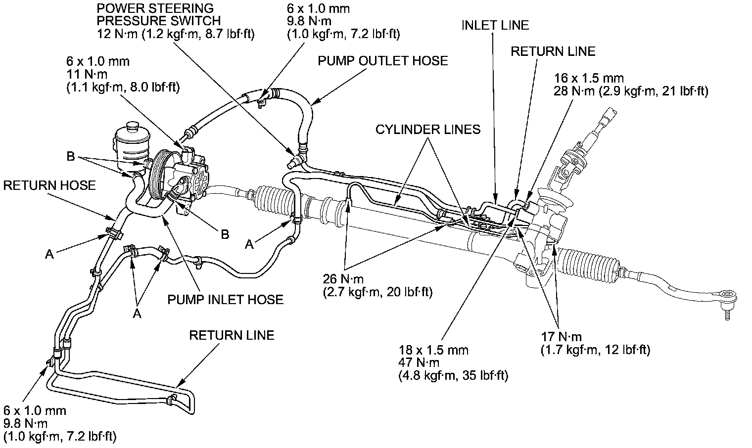 Hydraulic Power Steering Hose, Line, and Pressure Switch Replacement