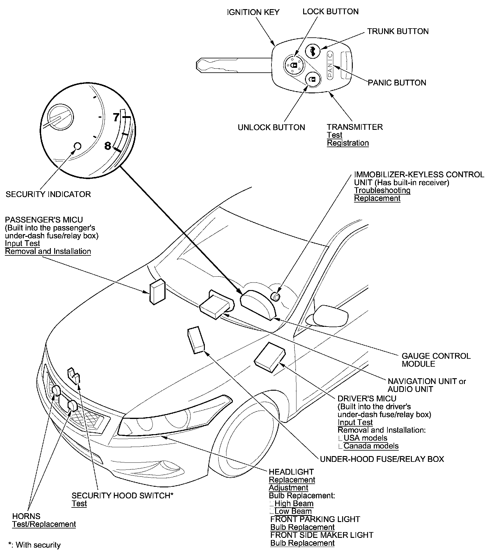 Keyless/Power Door Locks/Security System Component Location Index (2-Door)