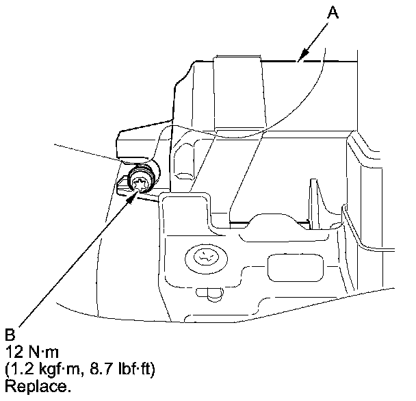 1. Install the SRS unit (A) with the new TORX bolt (B), using a TORX T30 bit.