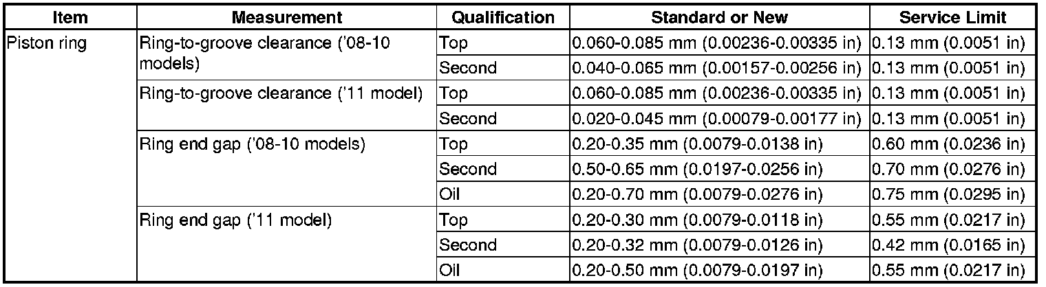 Piston Ring Specification(s)