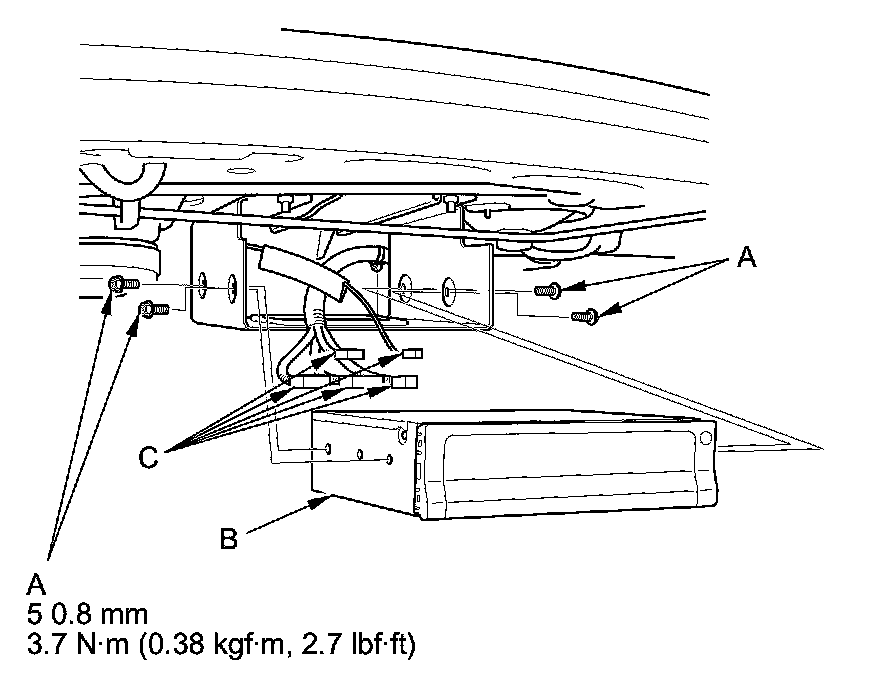 5. Disconnect the navigation unit connectors (C).