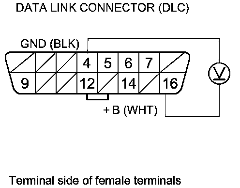 24. Measure the voltage between DLC terminal No. 16 and body ground.