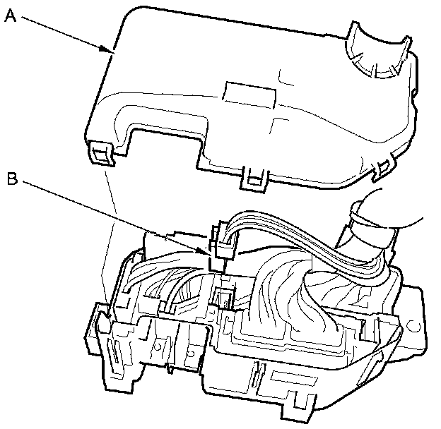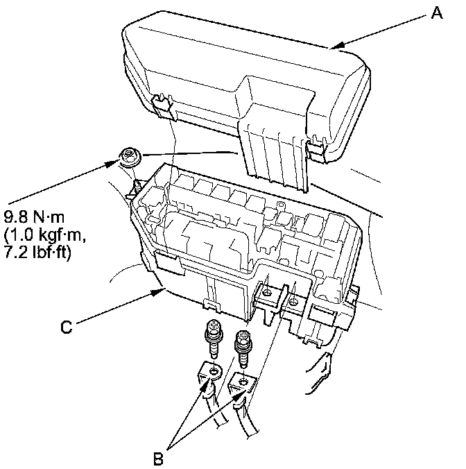 3. Remove the under-hood fuse/relay box (C) from the bracket.